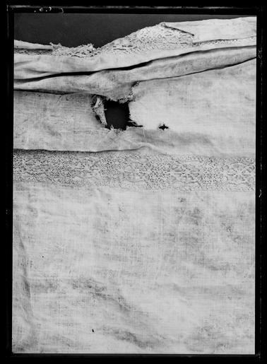| Keywords: Den yttersta av Gustav II Adolfs Lützenskjortor - Livrustkammaren - 18052.tif LSH artwork sv Rester av skjorta i 3 delar ryggstycke med en bit av kragen v framstycke med kragstycke och större delen av ärmen samt h framstycke med kragens främre halva och en del av bakstycket <br/><br/>1 Ryggstycket med en bit av kragen <br/>Skjortans vÃ¥dbredd har i h ö sida utökats med en vÃ¥d av 460 mm som tillför plagget en bredd av 230 mm pÃ¥ resp fram- och bakstycket PÃ¥ ryggsidan är denna fÃ¥ll gjord som stad mot stad - sammankastad fÃ¥ll frÃ¥n avigsidan av plagget 7 kaststygn Ã¥t v med H-tvinnat lingarn Av denna fÃ¥ll finns nerifrÃ¥n kantfÃ¥llen kvar 350 mm sedan har sannolikt frÃ¥n sprundet klippts och rivits en stor lucka av sömmen saknas 360 mm sedan kommer pÃ¥ nytt ett 630mm lÃ¥ngt stycke av kastfÃ¥llen Okstycket är här blott ett oregelbundet klippt stycke med snedklippt överkant PÃ¥ V sida som rivits av utefter sidfÃ¥llen - fällsömmen finns blott ytterligare ett stycke av ärmspjället kvar och en liten bit 40 mm av dess söm mot ärmen Spjällets kant är här 150 mm FÃ¥llen sydd med h-tvinnat lingarn med 6 stygn /cm och drygt 1 mm bredd Av kragen Ã¥terstÃ¥r i underkanten en 145 mm lÃ¥ng bit Upptill blott en 100 mm lÃ¥ng bit där spetsen sytts fast med 8 stygn kast- Ã¥t V/cm med H-tvinnat lingarn Kragen är 670 mm hög I kragen har ca 16 rynkor stripats och 7 kaststygn Ã¥t H sytts ned pÃ¥ rätan och ca 7 stygn/cm i de tättplacerade parallella garneringssömmarna Hela arrangemanget är ej mer än 3 mm brett H-tvinnatlingarn har använts till garneringssömmarna Den breda uddspetsen med bl a flätslag är 50 mm bred den smala 15 mm Den breda har en rapport av ca 24 mm <br/><br/>2 Ett stycke av skjortans V framsida med kragstycke och större delen av ärmen <br/>Största längd fram är frÃ¥n kragens underkant max 530 mm och 140 mm halssprund finns kvar Här är ocksÃ¥ vÃ¥dbredden bevarad mellan halssprund och ärmsöm Av ärmsömmen finns det 290 mm kvar varav 220 ovanför spjället som alltsÃ¥ är bevarat som en 70 mm bred remsa och här är spjället klippt snett ½ vÃ¥den verkar dÃ¥ att vara 595 à 600 mm bred pÃ¥ v bröstsida Slätt parti fram pÃ¥ axeln är ungefär 200 mm enligt detta stycke att döma Ärmmanschetten är 45 mm bred med stripade veck ca 12 veck/cm och 7 stygn sÃ¥väl mellan dessa som i de 2 garneringsraderna hela dekorens bredd 3 mm Spetsen är densamma som pÃ¥ kragen Manschettstyckena är mycket blodiga <br/><br/>3 H framstycke fr o m halssprundet med kragens främre halva och en del av bakstycket av kragen hela axelsömmen samt en övre del av ärmen med spjället - som dock har en reva En ände till1150 mm nÃ¥ende remsa finns av skjortans framstycke frÃ¥n axelsömmen räknat Nederst är denna blott 110 mm bred och dÃ¥ den tydligen har klippts av när tyget redan lÃ¥g veckat är dess kant uddig souvenir Axelsömmen är 160 mm och sneddad sÃ¥ att den är 130 mm vid axeln men krymper till blott ett par mm vid halsen PÃ¥ rätsidan är det ryggstycket som gÃ¥r över framstycket 3 sömmar med 7-8 stygn/cm Det övriga tyget - de ca 420 mm har rynkats samman i kragen till 100 mm Fällsömmen som förenar framstyckets med sidovÃ¥den är gjord för att bli särskilt smidig frÃ¥n skjortans insida med 7 kaststygn Ã¥t V gjort frÃ¥n rätan över staden FÃ¥llen är blott millimeterbred Av kragen finns i nederkanten en 160 mm lÃ¥ng bit I överkanten är den dock inte mycket mer än 130mm frÃ¥n hörnet räknat Längs överkanten stÃ¥r den smala uddspetsen upp och den löper utefter halssprundet mitt fram PÃ¥ kragens horisontella del är frÃ¥n överkanten och nedfallande en bredare uddspets fästad <br/><br/>Gemensamt <br/><br/>Av linnelärft med trÃ¥dantal 43 varptrÃ¥dar x 44 inslagstrÃ¥dar / cm2 sammanfogad av framstycke bakstycke b 1470 mm sidstycke samt ärmar ärmspjäll krage och ärmlinningar I sidorna har nertill ämnats ca 510 mm höga sprund staden är synlig här i v sida Skjortans bÃ¥lparti är rakt tillskuret Nedtill har skjortan fÃ¥llats upp med en 15-20 mm bred fÃ¥ll sydd med 5 à 6 stygn/cm av H-tvinnat lingarn De rektangulärt tillskurna ärmarna blott den v nÃ¥gorlunda bevarad är 610 mm lÃ¥nga och 460 mm breda och garnerade med 3 rader knappt 20 mm breda vita knypplade mellanspetsar pÃ¥sydda med ca 100 mm mellanrum Ärmarna är fastsydda i skjortans sidsöm pÃ¥ v sida där staderna stöta mot varandra I h sida har man klippt upp ett 390 mm lÃ¥ngt sprund för ½ ärmbredden 230 mm + spjäll 160 mm 390 mm Nedanför ärmstycket har alltsÃ¥ ett spjäll med ca160 mm sida sytts fast Ärmarna är alltsÃ¥ isydda helt normalt och inte som Anna Maja Nylén förmodat enligt en mer egendomlig konstruktion sÃ¥ att ärmen skulle nÃ¥ ända fram till halslinningen <br/><br/>Axelsömmarna är i det allra närmaste helt raka de yttersta 165 mm Man har blott vikt ner fÃ¥llarna nÃ¥got bredare mot axeln än mot halsen ca 5 mm differens Härefter har ll Ã¥terstÃ¥ende vidd rynkats in i den dubbelvikta knappt 70 mm hÃ¥ga kragen som är ca 400 mm lÃ¥ng sÃ¥ att frampartierna av skjortorna fördelats pÃ¥ kragens främre decimeterlÃ¥nga stycken medan ryggstycket rynkats i kragens bakre 200 mm <br/><br/>Halssprundet är klippt upp vertikalt i framstycket l minst 270 mm synligt i h sida där spetsgarneringen bevarats en 15 mm bred uddspets Dessutom kan pÃ¥pekas att sprundet ej placerats helt symmetriskt mitt pÃ¥ skjortans framstycke utan med ett par centimeters förskjutning Ã¥t h dÃ¥ det klippts ca 600 mm frÃ¥n v sidsöm och 230 + 350 580 mm frÃ¥n h sida Dekor av en 15 mm bred uddspets rapport 20 mm Överst pÃ¥ kragen är denna typ av spets fastsydd för att stÃ¥ upp som en avslutande kant PÃ¥ kragens utsida är kant i kant med den smala spetsen och nedÃ¥t en bredare uddspets fastsydd Denna är 50 mm br
