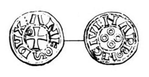 Keywords: Denier Narbonne Alphonse Jourdain.jpg Denier of Alfonso Jordan count of Toulouse minted in Narbonne when he occupied the city ca 1134/1139-1143 during the minority of Ermengarde viscountess of Narbonne Alphonse Jourdain comte de Toulouse frappé à Narbonne durant son occupation de la ville v 1134/1139-1143 pendant la minorité de la vicomtesse Ermengarde de Narbonne Emile Caron Monnaies féodales françaises Paris Rollin et Feuardent 1882 planche XIV no 3 M Dardel engraver Printed in 1882 Alfonso Jordan of Toulouse Denier Coins of medieval Europe Coins of the 12th century Narbonne PD-old |