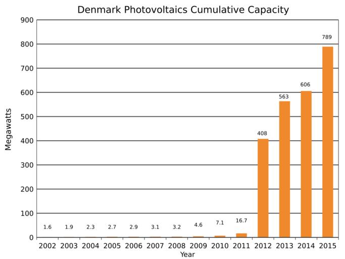 | Keywords: Denmark Photovoltaics Installed Capacity.svg translate yes en Installed photovoltaics in Denmark from 2002 to 2015 Source http //www iea-pvps org/index php id 92 eID dam_frontend_push docID 2795 IEA-PVPShttp //www iea-pvps org/fileadmin/dam/public/report/PICS/IEA-PVPS_-__A_Snapshot_of_Global_PV_-_1992-2015_-_Final_2_02 pdf 2016-03-10 own Delphi234 other versions cc-zero Solar energy in Denmark Photovoltaic power statistics | ||||