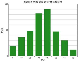 Keywords: Denmark Wind and Solar Generation Histogram-Equal Annual.svg translate yes en Histogram showing the number of days that wind power and solar power in Denmark would provide a given range of generation during 2015 if an equal total was from wind and solar For this simulation the actual solar generation was multiplied by about twenty to equal the wind generation Data source https //transparency entsoe eu/generation/r2/actualGenerationPerProductionType/show entsoe 2016-05-09 own Delphi234 other versions cc-zero Wind power in Denmark Solar energy in Denmark Histograms |