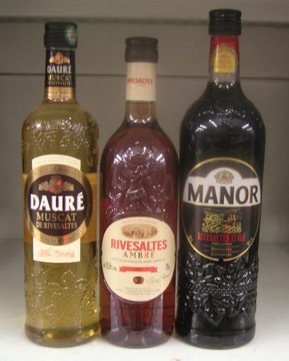 | Keywords: Denominacio d'origen Ribesaltes.jpg ca A l'esquerra una ampolla de muscat semblant al moscatell pero un pel menys dolç i més claret de Ribesaltes a la Catalunya Nord Al centre una ampolla de vi blanc ambré de Ribesaltes i a la dreta una de vi negre tuilé de Ribesaltes Les ampolles son transparents i totes tres tenen sempre tradicionalment ornaments en relleu de vidre mateix Fixeu-vos en els colors diferents a cada tipus de vi own Slastic 2010 Rivesaltes VDN Taken with Minolta Dimage Xt | ||||