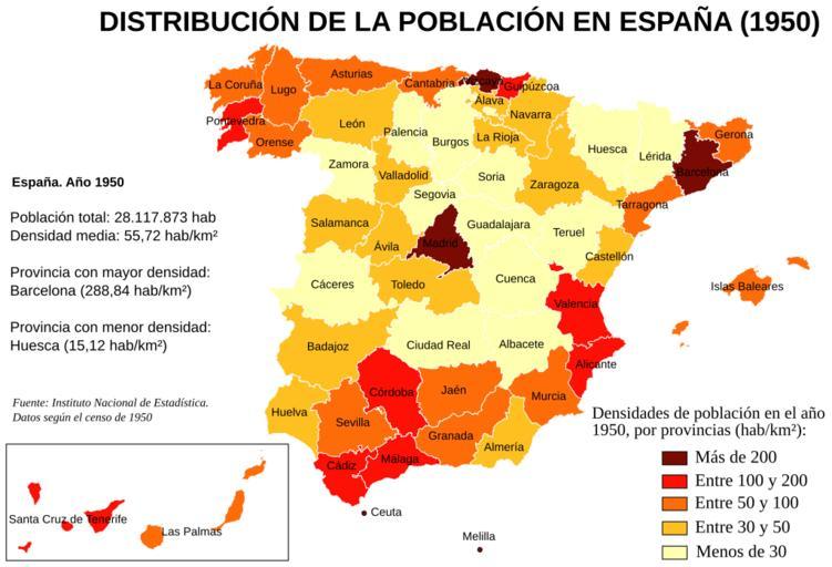 Keywords: Densidades de población en España (1950).svg Mapa de España con las densidades de población por provincias según el censo del Instituto Nacional de Estadística de 1950 Instituto Nacional de Estadística de España http //www ine es/inebase2/leer jsp L 0 divi DPOH his 0 Población de hecho 2007 Creando por Rodriguillo tomando como mapa base Image Provinces of Spain svg creado por Emilio Gómez Fernández Image Densidades de población en España 1950 png Rodriguillo Population density maps of Spain Maps of the history of Spain 1950 in Spain spain in the 1950s 1950 maps |