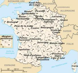 | Keywords: Départements et régions de France.svg <imagemap> Image Départements et régions de France svg thumb right Régions de France clicables avec liens vers articles de Wikipédia poly 566 447 532 493 551 545 575 546 584 503 573 452 fr Corse poly 255 492 264 481 251 447 319 409 304 366 317 352 341 361 350 388 373 388 381 407 308 494 fr Languedoc-Roussillon poly 359 436 380 407 370 389 412 394 405 379 449 340 466 359 466 388 493 391 494 411 456 449 422 458 fr Provence-Alpes-Côte d'Azur poly 470 328 451 266 424 268 402 276 390 265 335 281 339 326 364 337 340 363 351 388 410 395 402 378 fr Rhône-Alpes poly 341 279 329 251 306 251 302 170 314 157 339 182 368 176 394 198 397 262 fr Bourgogne poly 396 201 418 176 441 178 458 190 463 205 426 267 399 274 fr Franche-Comté poly 452 184 463 207 482 205 498 116 455 106 452 126 465 133 fr Alsace poly 391 87 430 91 454 106 451 124 464 131 451 181 410 177 379 143 376 110 381 88 fr Lorraine poly 347 66 368 54 390 85 381 90 375 109 377 143 410 179 393 201 369 176 340 181 319 158 326 104 340 99 fr Champagne-Ardenne poly 263 482 254 487 166 471 182 446 171 428 171 412 220 396 242 350 268 352 270 369 295 357 318 407 252 445 fr Midi-Pyrénées poly 136 314 178 342 209 309 235 324 242 348 211 400 172 407 168 426 181 442 162 473 109 439 fr Aquitaine poly 212 308 223 274 273 269 289 293 269 350 242 347 235 321 fr Limousin poly 275 268 303 247 327 251 339 276 333 298 340 330 361 333 338 360 317 351 303 364 294 353 272 367 269 346 284 311 287 288 fr Auvergne poly 178 337 137 316 136 276 164 269 154 235 189 225 201 240 210 236 231 269 218 279 215 298 fr Poitou-Charentes poly 190 224 196 202 219 189 221 141 246 127 265 163 302 168 305 246 273 267 231 270 212 236 200 238 Centre poly 164 268 118 277 83 211 146 179 149 149 199 150 221 167 218 187 196 199 187 226 152 236 fr Pays de la Loire poly 149 148 141 184 94 204 9 179 5 133 73 120 Bretagne poly 131 140 164 150 182 145 217 160 222 140 205 126 200 96 140 75 121 78 fr Basse-Normandie poly 221 138 207 127 195 83 243 61 256 73 256 110 243 128 fr Haute-Normandie poly 254 111 305 117 320 131 318 156 301 168 266 163 248 122 fr Île-de-France poly 256 109 254 71 243 60 247 43 283 57 345 63 339 96 326 103 320 128 308 115 289 116 fr Picardie poly 247 43 220 42 220 11 284 5 345 43 345 63 281 56 263 47 fr Nord-Pas-de-Calais desc bottom-right </imagemap> Departements and region of France French geographics objects use ISO 3166-2 FR for ids Mapa de los departamentos franceses Départements et régions de France avec leurs préfectures Les objects géographiques français utilisent les identifiants provenant de ISO 3166-2 FR own 2006-04 bayo Other versions Other versions/Départements et régions de France Political maps of France SVG labeled maps of administrative divisions of France location map scheme ISO 3166 Administrative maps of regions of France |