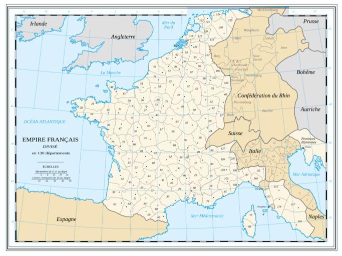 | Keywords: Departements of French Empire 1811-fr.svg fr Les départements du 1er Empire français 1811 Attention Cette carte est une carte historique La qualité de sa précision ne permet pas une utilisation dans un contexte moderne Les numéros de référence des départements français sont ceux en vigueur à l'époque Ceux des provinces du royaume d'Italie sont arbitraires Le département numéro 90 Liamone fut fusionné avec le numéro 19 Golo le 19 avril 1811 ; le département numéro 131 Lippe fut créé le 26 avril 1811 ; les départements numéros 90 Liamone et 131 n'ont donc jamais existé officiellement en même temps bien qu'ils soient tous deux représentés sur la carte en French Departments of the first Empire 1811 Be careful The map is an historical map The precision is not sufficient for a modern use The department numbers are the trues postal numbers Provinces numbers of the italian kingdom are arbitraries The department number 90 Liamone was merged with number 19 Golo on April 19th 1811 ; the department number 131 Lippe was created on April 26th 1811 ; therefore both departments 90 Liamone and 131 never existed officially at the same time although they are both drawn on the map Tiré d'une carte établie en 1811 par Messieurs Drioux et Leroy voir la carte de l ™http //www es-conseil fr/pramona/outils/franceempire jpg Empire français divisé en 130 départements par MM Drioux et Leroy également sur Commons Dep-fr jpg Ewan ar Born 2008-07-08 Inkscape Translation possible Atelier graphique carte SVG maps showing history in French SVG maps in French Maps of the First French Empire 1811 SVG maps of the history of departments of France |