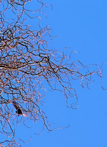 Keywords: departure branches twisted willow sky blue bird twigs morning