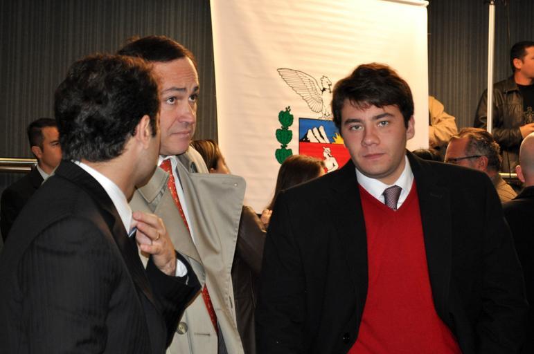 Keywords: Deputados Stephanes Jr (PMDB), Alexandre Curi (PMDB) e Evandro Jr (PSDB) antes do início da solenidade na manhã desta terça-feira (28). O evento ocorreu no Palácio das Araucárias.