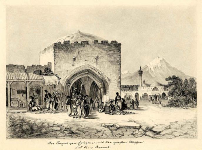 Keywords: Der Bazar von Eriwan mit der großen Moschee.jpg de Der Bazar von Eriwan mit der großen Moschee und dem Ararat 16 5 x 24 cm http //www philographikon com/printscaucasia html Wood engraving by R Illner after Paul Franken 1875 thumb Die Gartenlaube 1861 b 101 PD-old Blue Mosque of Yerevan Mount Ararat in art Markets in Yerevan Paul von Franken ImageNote 1 122 406 309 33 590 440 2 Basar von Eriwan mit der großen Moschee und dem Ararat ImageNoteEnd 1 |