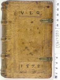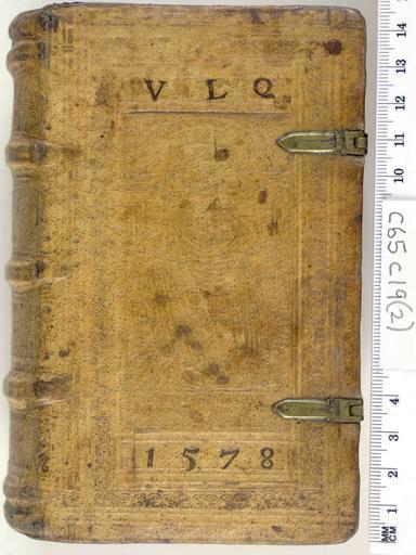 | Keywords: Der Hundert vnnd drit Psalm Dauids ... Sampt etlichen andern Psalmen, vnnd schonen Trostspruchen auss der Apostel Schrifften. -bound with other works - Upper cover (c65c19).jpg Style Dated Panel design; Caption Upper cover; Colour White / cream; Edge Unspecified exhibition history Decorative Technique Tooled in blind; Cover Material Pigskin alum tawed Remnants of 2 pairs of clasps Dated 1578 on upper cover bound for VLQ Upper and lower cover show Luther panel stamp object history Text 1560; Nuremberg; Unspecified object type Cc-zero place of creation Binding Germany place of discovery Unspecified British Library image http //www bl uk/catalogues/bookbindings/LargeImage aspx RecordId 020-000007382 ImageId ImageId 43296 Copyright BL Der Hundert vnnd drit Psalm Dauids Sampt etlichen andern Psalmen vnnd schonen Trostspruchen auss der Apostel Schrifften bound with other works Uploaded with GWToolset Der Hundert vnnd drit Psalm Dauids Sampt etlichen andern Psalmen vnnd schonen Trostspruchen auss der Apostel Schrifften bound with other works - Upper cover c65c19 http //www webarchive org uk/bldatasets/bindings/7822_4 jpg Bookbinding 16th-century bookbinding British Library Bookbindings |
