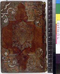 Keywords: Der Psalter dess K-oniglichen Propheten Dauids, In-deutsche reymen verstendiglich vnd deutlich gebracht. - Lower cover (c65bb13).jpg Style Centre and cornerpiece; Caption Lower cover; Colour Brown; Edge Gilt gauffered and painted exhibition history Decorative Technique Painted Tooled in gold; Cover Material Calf Traces of 2 pairs of ties object history Text 1573; Leipzig; Unspecified object type Cc-zero place of creation Binding Germany place of discovery Unspecified British Library image http //www bl uk/catalogues/bookbindings/LargeImage aspx RecordId 020-000007856 ImageId ImageId 43533 Copyright BL Der Psalter dess K oniglichen Propheten Dauids In deutsche reymen verstendiglich vnd deutlich gebracht Uploaded with GWToolset Der Psalter dess K oniglichen Propheten Dauids In deutsche reymen verstendiglich vnd deutlich gebracht - Lower cover c65bb13 http //www webarchive org uk/bldatasets/bindings/8381_4 jpg Bookbinding 16th-century bookbinding British Library Bookbindings |