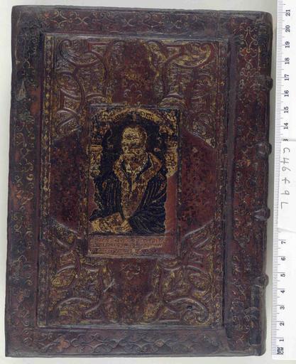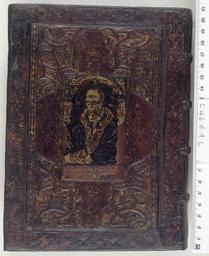Keywords: Der Psalter mit den Summarien. D. Mart. Luth. -i.e. Martin Luther.- - Lower cover (c46f9).jpg Style Panel design Protestant reformers; Caption Lower cover; Colour Brown; Edge Unspecified exhibition history Decorative Technique Painted Panel stamp in blind Tooled in gold; Cover Material Unspecified Macchi states; Bound 1550-1600 Centre and cornerpiece with onlay The ugly Luther resembles bindings produced by Lukas Weischner see Davis 693 object history Text 1575; Leipzig; Unspecified object type Cc-zero place of creation Binding Germany place of discovery Unspecified British Library image http //www bl uk/catalogues/bookbindings/LargeImage aspx RecordId 020-000007452 ImageId ImageId 43331 Copyright BL Der Psalter mit den Summarien D Mart Luth i e Martin Luther Uploaded with GWToolset Der Psalter mit den Summarien D Mart Luth i e Martin Luther - Lower cover c46f9 http //www webarchive org uk/bldatasets/bindings/7858_4 jpg Bookbinding 16th-century bookbinding British Library Bookbindings |