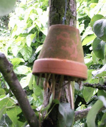 Keywords: Dermaptera flowerpot.jpg en A picture taken from a flowerpot with straw constructed to attract and house dermaptera-species which are natural predators and help to repel insect pests Fixing of the straw to the pot is done using a metal wire which goes trough the pots bottom so that it may also function to inmediatelly hang the pot up the tree Own KVDP 2008-06-15 Ceramic flowerpots |