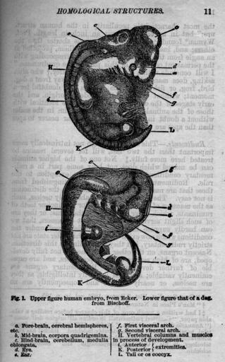 | Keywords: Descent of Man 1874 - Fig 1.png Unedited scan of Figure 1 from Darwin's Descent of Man second edition The Descent of Man And Selection in Relation to Sex by Charles Darwin Reprinted from the Second English Edition Revised and Augmented A L Burt Company New York 1874 Page 11 Footnote on page 10 indicates human embryo is from Ecker 'Icones Phys ' 1851-1859 embryo of the dog is from Bischoff 'Entwicklungsgeschichte des Hunde-Eies' 1845 <br/> Image scanned by User Davepape 1874 originals 1851-1859 and 1845 Ecker and Bischoff full names and dates currently unknown PD-old assumed - original images 150+ years old; Darwin died 1882 Image Descent of Man 1874 - Fig 1 editDP1a png PD-old The Descent of Man A L Burt edition 1874 Descent of Man - Burt 1874 - Fig 01 |
