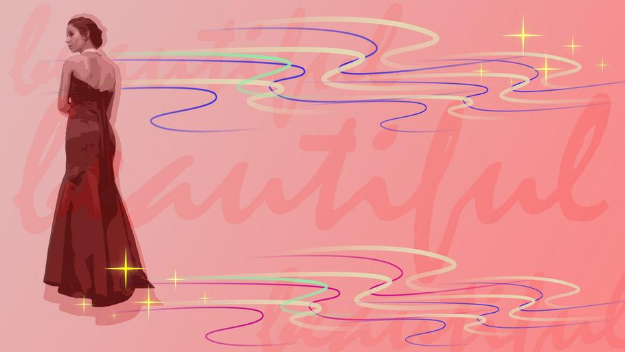 Keywords: desktop background girl woman figure pink pink background pink wallpaper style elegance elegant wave line wavy lines dress ball gown view postcard
