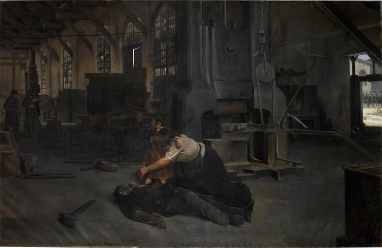 | Keywords: Después de una huelga, de José Uría (Museo del Prado).jpg La obra se basa en una huelga protagonizada por los empleados de los Talleres de la Compañía del Norte situada en Valladolid que tuvo lugar en la primavera de 1892 y que causó un gran impacto entre los vallisoletanos 1895 oil on canvas Size cm 380 250 Institution Museo del Prado Depositado en el Institution Museo de Bellas Artes de Asturias https //www museodelprado es/coleccion/obra-de-arte/despues-de-una-huelga/ad71b440-64a1-4101-a4d6-b1d8d3967353 accession number P05697 https //content2 cdnprado net/imagenes/Documentos/imgsem/ad/ad71/ad71b440-64a1-4101-a4d6-b1d8d3967353/a6acfcd7-508b-4826-910d-1463daec5272 jpg PD-old-100 Strikes in art José Uría y Uría Spanish 19th-century paintings in the Museo del Prado 1895 paintings in Spain Paintings in the Museum of Fine Arts of Asturias |