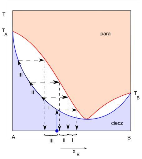 Keywords: Dest azeotr.svg en Simple distillation - azeotrope pl Destylacja prosta - azeotrop own Joanna Kośmider 2010-12-30 Cc-zero Distillation Binary phase diagrams