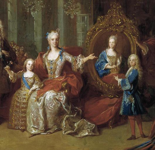Keywords: Detail of the 1723 portrait of the Family of Philip V of Spain, Jean Ranc.jpg Painting en Detail of the portrait of the Family of Philip V of Spain 1723 Oil on canvas cm 44 65 Institution Museo del Prado PD-old-100 http //ladyreading forumfree it/ t 25653557 ImageNote 1 468 375 66 573 1464 1416 2 Elisabeth Farnese wife of Philip V of Spain ImageNoteEnd 1 ImageNote 2 980 319 146 312 1464 1416 2 Infanta MarÃa Ana Victoria At the time engaged to the young King Louis XV of France holding the French royal crown eventually the Queen of Portugal ImageNoteEnd 2 ImageNote 3 1202 677 66 363 1464 1416 2 Infante Carlos future King of Spain ImageNoteEnd 3 ImageNote 4 234 656 73 175 1464 1416 2 Infante Felipe future Duke of Parma ImageNoteEnd 4 Family of Philip V 1723 Elisabeth Farnese Philip Duke of Parma Mariana Victoria of Spain Paintings of Charles III of Spain Details of portrait paintings Mantle fleurdelisé in portrait paintings 1723 Details of paintings French royal crown in art |