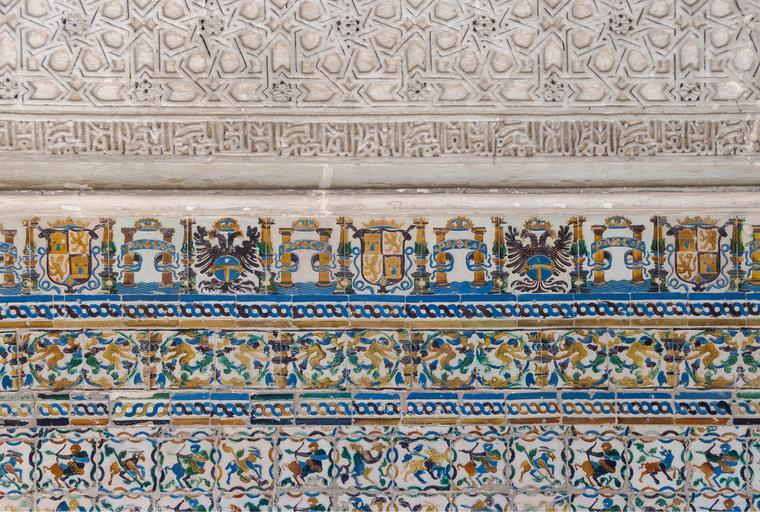 | Keywords: Detail Cenador Carlos V real alcazares Seville Spain.jpg fr Décor mudéjar et plateresque frises de faïences armoriées salle à manger d'extérieur tonnelle de Charles Quint jardins de l'Alcazar Seville Espagne en Mudejar and plateresque scenery porcelain armorial tiles Cenador of Charles V Gardens of the Alcazar Seville Spain 2012-08-07 17 16 25 own Jebulon 37 382774 -5 990312 cc-zero Uploaded with UploadWizard Jardines del Alcázar de Sevilla Coats of arms of the crown of Castile and Leon Pillars of Hercules in heraldry Double-headed eagle sable in supporters Quality images by Jebulon Quality images of Sevilla Azulejos in Alcázar of Seville Arabesque details in Alcázar of Seville Azulejo friezes Azulejos Mudéjar QualityImage |