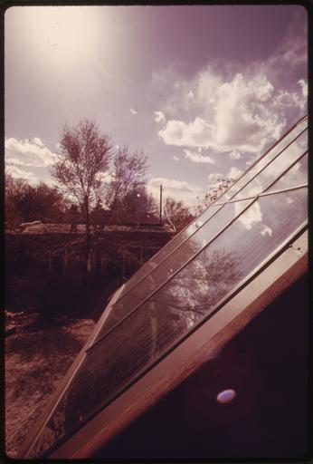| Keywords: DETAIL OF THE GLASS-COVERED ROOF PANEL OF AN ADOBE HOME IN SANTA FE, NEW MEXICO, CONVERTED TO SOLAR HEATING.... - NARA - 555288.jpg Scope and content General notes 555288 Local identifier 412-DA-12836 Environmental Protection Agency 12/02/1970 - NARA-Author Norton Boyd 1936- Photographer 1111093 <br /> New Mexico United States North and Central America state 4191641 35 -105 <br /> Still Picture Records Section Special Media Archives Services Division NWCS-S National Archives at College Park 8601 Adelphi Road College Park MD 20740-6001 04/1974 Record group Record Group 412 Records of the Environmental Protection Agency 1944 - 2006 Record group ARC 708 DOCUMERICA The Environmental Protection Agency's Program to Photographically Document Subjects of Environmental Concern compiled 1972 - 1977 Series ARC 542493 File unit File unit ARC Variant control numbers Agency-Assigned Identifier 214/56/012836<br /> NAIL Control Number NWDNS-412-DA-12836 Other versions <gallery> File DETAIL_OF_THE_GLASS-COVERED_ROOF_PANEL_OF_AN_ADOBE_HOME_IN_SANTA_FE _NEW_MEXICO _CONVERTED_TO_SOLAR_HEATING _-_NARA_-_555288 tif tif File DETAIL_OF_THE_GLASS-COVERED_ROOF_PANEL_OF_AN_ADOBE_HOME_IN_SANTA_FE _NEW_MEXICO _CONVERTED_TO_SOLAR_HEATING _-_NARA_-_555288 jpg jpg </gallery> NARA-cooperation PD-USGov Solar panels Santa Fe New Mexico 1974 in New Mexico NARA images of New Mexico |