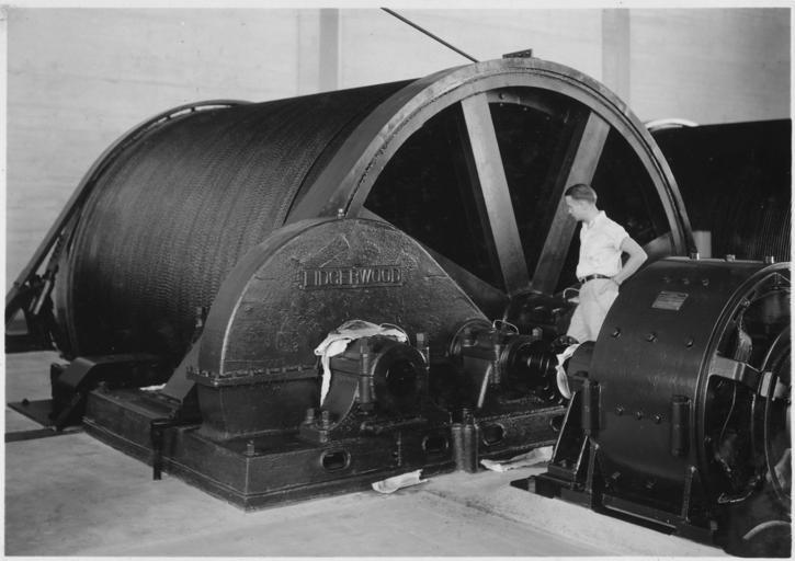 | Keywords: Detail of hoist drum and motor, 150-ton cableway hoist house - NARA - 293939.jpg Scope and content Photograph from Volume Two of a series of photo albums documenting the construction of Hoover Dam Boulder City Nevada General notes 293939 Local identifier Department of the Interior Bureau of Reclamation Engineering and Research Center 05/18/1981 - 03/04/1988 NARA's Rocky Mountain Region Denver NRGA Building 48 Denver Federal Center West 6th Avenue and Kipling Street Denver CO 80225-0307 1933-08-29 Record group Record Group 115 Records of the Bureau of Reclamation 1889 - 2008 Record group ARC 444 Photograph albums compiled 1903 - 1972 Series ARC 293611 File unit File unit ARC Variant control numbers NAIL Control Number NRG-115-CONSTPHO85006-BC21927 Other versions <gallery> File Detail of hoist drum and motor 150-ton cableway hoist house - NARA - 293939 tif tif </gallery> Key Lidgerwood NARA-cooperation PD-USGov Cableway stations 1933 Six Companies Inc cableways at Hoover Dam construction site Hoist house interior 1933 in the United States |