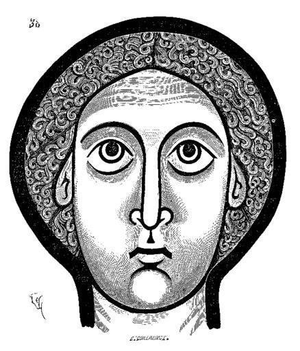 Keywords: Detail.vitrail.eglise.Neuwiller.png Nous reproduisons ici fig 38 une tête d'un personnage saint Timothée qui se voit dans une fenêtre de la chapelle de Saint-Sébastien accolée à l'église de Neuwiller Ce vitrail dont il ne reste que la partie supérieure paraît appartenir comme style à une époque très-ancienne; cependant la forme des lettres de l'inscription placée au-dessus du nimbe ne saurait faire remonter ce vitrail au delà du milieu du XII<sup>e</sup> siècle Le caractère de la tête du saint est tout empreint de la tradition grecque et rappelle les plus anciennes mosaïques de Saint-Marc de Venise Dictionnaire raisonné de l'architecture française du XI<sup>e</sup> au XI<sup>e</sup> siècle ~ 1856 Eugène Viollet le Duc Viollet-le-Duc Human faces in art Stained glass windows in Haut-Rhin Neuwiller Stained glass Viollet-le-Duc |