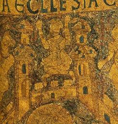 Keywords: Detail with the architectural framing of an apostle.jpg author 1031 textile embroidery Institution Hungarian National Museum Budapest object history credit line accession number own scanned by Szilas from A magyar Szent Korona by Tóth Endre Szelényi Károly Kossuth 2000 Budapest PD-old-100 Coronation pall of Hungary |