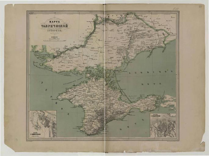 | Keywords: Detailed atlas of the Russian Empire from 1871 pages 88-89 map 49.jpg en Detailed atlas of the Russian Empire made by the cartographic institution of A Ilyin in 1871 1871 Под обный атлас Российской импе ии с планами главных го одов от 1871 года ст аницы 88-89 ка та 49 Ка тог афическое заведение А Ильина Taurida Governorate PD-old-70-1923 Uploaded with UploadWizard Old maps of Crimea | ||||