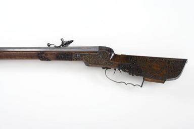 Keywords: Detalj hjullåsstudsare, v sida - Livrustkammaren - 65341.jpg Åttsidig åttaräfflad pipa av stål med plana bommar Kort rektangulärt svansskruvblad <br/>Riktmedel Inlaxade riktmedel Blånerat klaffsikte med den horisontella delen framtill vågformgad Stolpkorn av mässing <br/>Fästning Tre häften Pipan fäst med blånerad krysskruv underifrån varbygelskruven samt tre pipstift av stål <br/><br/>Hjullås av tysk typ plant låsbleck l 210 mm invändigt hjul Fängpanna med rundad framkant filad dekor bakåtböjd eldskärm fängpannelock med rörlig arm tryckknapp med runt huvud Hane med rundad hankropp med ås nederkanten liksom handstudeln balusterformad Ringformig graverad hanhals Lös överkäke med graverade linjer käkskruv med fyrsidigt huvud s-formigt fingergrepp med kulformig avslutning Hanfjäder med fasade kanter bakre delen bladformig profilerat fjäderlöv Stång avtryckarstång och hanstudel blånerade Fängpannelockets axel och hela slagfjädern brunerad <br/>Fästning Två blånerade låsskruvar <br/>Avtryckare med snälltryck allt blånerat Rektangulärt avtryckarbleck <br/><br/>Helstock av trä valnöt kolv av tysk typ med kolvlåda och vinge med kraftigt snidad volut framtill Kolvlådelock med ståltrådsdekor och snidade öglor med stålstift kartusch i ståltrådsorneringen Bakplåt och stödkula av stål På anslagssidan på kolvryggen runt låsskruvarna och svansskruvbladet ståltrådsinläggningar i form av rankor och inslagna stålstift på anslagets mitt en bladkrans Två sexpassformiga låsskruvbrickor av stål På framstockens bakre del snidade växtornament och bladvoluter med stålstift En punsad rand följer intill den snidade dekoren Överrörka av stål Näsband av horn Varbygel av stål med tre fingerlägen främre delens kanter fasade På kolvens undersida ett sigill med Stenbocksvapen under grevlig krona nedanför skölden bokstäverna I G S B G T B Johan Gabriel Stenbock Greve Till Bogesund <br/><br/>Tillbehör <br/>Laddstock av trä l 780 mm i ena änden en hornskoning l 25 mm i andra änden ett invändigt gängat stålrör l 145 mm original caption detalj hjullåsstudsare - LRK 3199 v sida<br/> Nyckelord Hjullåsstudsare Föremålsbild ca other date - 1650 1700 walnut e3 - eldvapen - stock material valnöt - steel e1247 - eldvapen - pipa lås riktmedel och beslag material stål - brass e4 - eldvapen - riktmedel material mässing g 4130 size mm 115 size mm 790 pipa size mm 1120 LRK Johan Gabriel Stenbock greve riksråd Basutställning Livrustkammarens basutställning 1978 I G S B G T B anv e3 - eldvapen - stock; Johan Gabriel Stenbock I G S B G T B anv e3 - eldvapen - stock; Johan Gabriel Stenbock place of origin original filename lm_dig2116 39776 inventory number LRK 3199 65341 CC-BY-SA Göran Schmidt <gallery caption Different images of same object > File Detalj hjullåsstudsare - Livrustkammaren - 56780 jpg </gallery> Göran Schmidt Musket images from Livrustkammaren color images Wheellock musket images from Livrustkammaren Media contributed by LSH unmatched material Media contributed by LSH dim-with multiple size templates Media contributed by LSH unmatched keyword Color images from Livrustkammaren Media contributed by LSH 2013-10 |