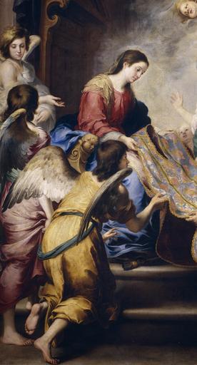 Keywords: Detalle de la Aparición de la Virgen a San Ildefonso, de Murillo (Museo del Prado).jpg La obra representa a la Virgen María apareciéndose al arzobispo San Ildefonso de Toledo y entregándole una casulla ~ 1655 oil on canvas Size cm 259 309 Institution Museo del Prado Sala 016 https //www museodelprado es/coleccion/obra-de-arte/aparicion-de-la-virgen-a-san-ildefonso/a5f69627-7928-4970-a1b4-3f4d0f656c32 accession number P00979 http //www museodelprado es/imagen/alta_resolucion/P00979 jpg PD-old-100 Aparición de la Virgen a San Ildefonso de Murillo Museo del Prado |