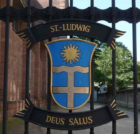 Keywords: Deus Salus Ludwigskirche Ludwigshafen.JPG Wappen und Wahlspruch Anton Schlembach 1932 Bischof von Speyer 1983-2007 en St Ludwig in Ludwigshafen Germany Own Immanuel Giel 2009-06 St Ludwig Ludwigshafen am Rhein Coats of arms of bishops of the Roman Catholic Diocese of Speyer Wrought iron coat of arms |