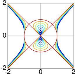 Keywords: Devils curve a=0.0-1.0 b=1.svg Illustration of en Devil's curve self-made with en Matlab 03 15 14 July 2007 UTC Oleg Alexandrov v An illustration of Devil's curve function main linewidth and font size lw 30; fs 250; colors red 0 867 0 06 0 14; blue 0 129 205/256; green 0 200 70/256; black 0 0 0; white 0 99 1 1 1; Set up the plotting window figure 1 ; clf; set gca 'fontsize' fs 'linewidth' lw/4 ; hold on; axis equal; grid on; N 500; number of points don't make it big code will be slow Lx 2; Ly 2; X Y meshgrid linspace -Lx Lx N linspace -Ly Ly N ; X and Y coordinates Ncurves 10; A linspace 0 1 Ncurves ; figure 2 ; clf; hold on; axis equal; axis off; Color jet; for a A b 1; Z Y 2 Y 2 - a 2 - X 2 X 2 - b 2 ; graph the curves using 'contour' in figure 2 figure 2 ; c stuff contour X Y Z 0 0 ; extract the curves from c and graph them in figure 1 using 'plot' need to do this kind of convoluted work since plot2svg can't save the result of 'contour' but can save the result of 'plot' m n size c ; while n > 0 l c 2 1 ; x c 1 2 l+1 ; y c 2 2 l+1 ; get x and y of contours figure 1 ; plot x y 'color' Color floor 58 a 2 +1 'linewidth' lw/2 ; c c l+2 n ; m n size c ; end end; figure 1 ; axis equal; axis -Lx Lx -Ly Ly ; plot2svg sprintf 'Devils_curve_a 0 0-1 0_b 0 2g svg' b ; saveas gcf sprintf 'Devils_curve_a 0 2g_b 0 2g eps' a b 'psc2' ; float left Rational curves Quartic curves Files by User Oleg Alexandrov from en wikipedia Images with Matlab source code |