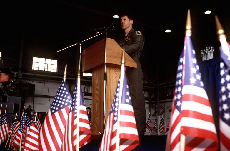 | Keywords: DF-ST-98-00042.JPEG US Air Force Capt Scott F O'Grady surrounded by US Flags speaks to members of the press upon his arrival Capt O'Grady's F-16 Fighting Falcon was shot down over Bosnia on June 2 1995 while he was flying in support of Operation Deny Flight After 6 days of evasion he was rescued by US Marines from the 24th Marine Expeditionary Unit deployed from the USS KEARSAGE LHD-3 Capt O'Grady is attached to the 555th Fighter Squadron 31st Fighter Wing http //www dodmedia osd mil/DefenseLink_Search/Still_Details cfm SDAN DFST9800042 JPGPath /Assets/Still/1998/Air_Force/DF-ST-98-00042 JPG 1995-06-02 DoD photo by SRA TANA R HAMILTON PD-USGov PD-USGov-Military-Air Force Mrkonjić Grad incident Photographs of flags of the United States 555th Fighter Squadron United States Air Force |