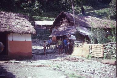 | Keywords: batti commerce footpath tea shop teashop transportation nepal outdoor Date: 1968-10 Location: Hemja, Kaski Description: Tea shops at the bottom of Kaskikot hill near Suikhet on the footpath from Pokhara to Lumle. Date: 1968-10 Location: Hemja, Kaski Description: Tea shops at the bottom of Kaskikot hill near Suikhet on the footpath from Pokhara to Lumle. |