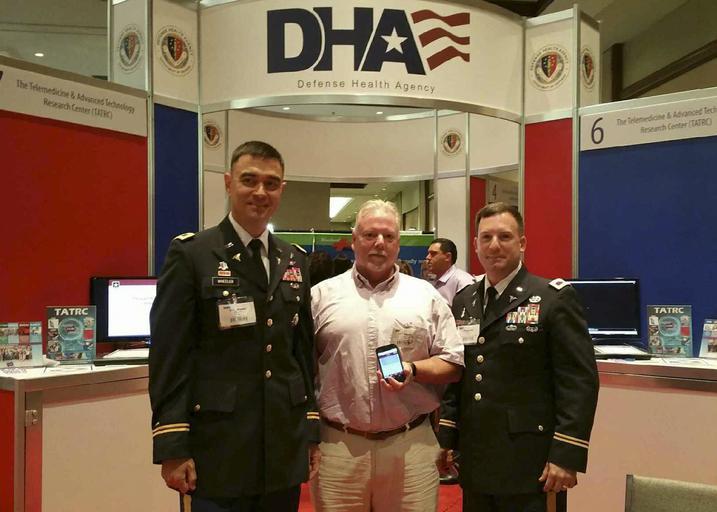 Keywords: indoor TATRC Director, COL Dan Kral (far right) and COL Gary Wheeler of Lyster Army Community Hospital at Fort Rucker, (pictured left) along with Mr. John Winston, PM for AAMTI, (center) show off a new mobile phone that was funded by the AAMTI. TATRC Director, COL Dan Kral (far right) and COL Gary Wheeler of Lyster Army Community Hospital at Fort Rucker, (pictured left) along with Mr. John Winston, PM for AAMTI, (center) show off a new mobile phone that was funded by the AAMTI. |