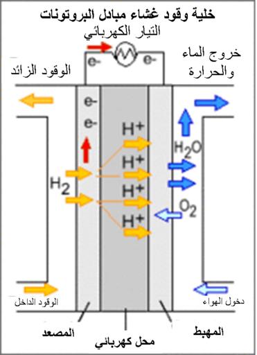 Keywords: Diagram of PEM Fuel CEll (Arabic).png en Diagram of PEMFC in Arabic language ar مخطط خلية وقود غشاء تبادل البروتون Own Ciphers 2008 Oct 29 PD-USGov Image of a proton exchange membrane fuel cell From http //www eere energy gov/hydrogenandfuelcells/fuelcells/fc_types html Fuel cell diagrams Diagrams in Arabic |