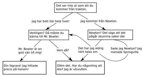| Keywords: Dialog tree example (sv).svg en Swedish translation of File Dialog tree example svg sv Svensk översättning av File Dialog tree example svg File Dialog tree example svg + own WikiPhoenix 2016-01-04 Cc-zero <gallery>Dialog tree example svg Original</gallery> Interactive fiction Gameplay |