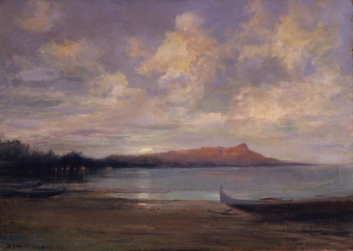 | Keywords: 'Diamond Head Nocturne' by D. Howard Hitchcock.JPG Diamond Head Nocturne by D Howard Hitchcock oil on canvas 18 x 25 inches Frazier Fine Art no date D Howard Hitchcock PD-old-auto 1943 Diamond Head in art Hitchcock Paintings of beached canoes by D Howard Hitchcock |