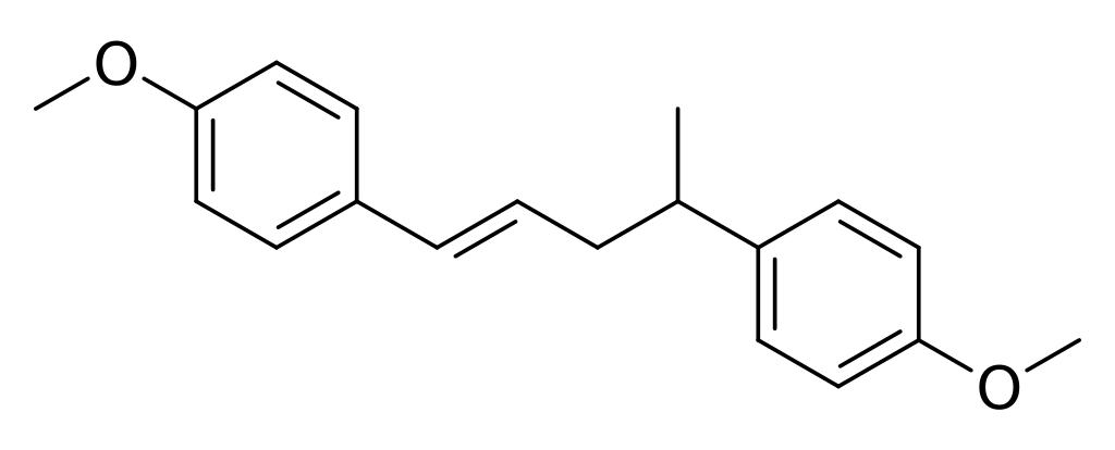 Keywords: Dianethole.svg Chemical structure of dianethole Own 16 00 10 September 2016 UTC Ed Edgar181 Methoxybenzenes