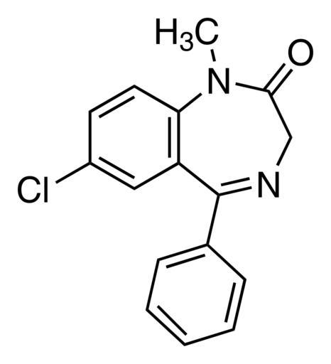Keywords: Diazepam2.svg Chemical structure of diazepam Selfmade with ChemDraw 2007-01 Calvero PD 100px Diazepam