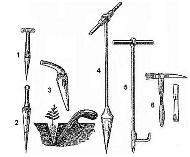 | Keywords: Dibbles in Russia XIX.jpg en Afforestation hand tools in Russia at the end of the XIX century 1 2 3 small planting dibbles; 4 large dibble; 5 Jerome planting dibble 6 combination planting mattock /hammer ru Лесопосадочные учные инст ументы в России конца XIX века 1 2 3 малые сажальные колья; 4 большой сажальный кол; 5 сажальный кол Ие онима; 6 сажальный молоток http //www tvpnovator ru/ page /21158/22829 mode prod here / здесь unknown / неизвестно XIX century / XIX в PD-old Dibbles Karl Franz Türmer |