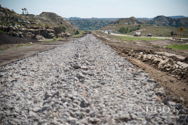 Keywords: disckinson district disckinsondistrict construction project constructionproject road work roadwork medora nd usa outdoor soil river landscape water riverbed rock Breaking up and removal of old pavement on an Interstate reconstruction project Breaking up and removal of old pavement on an Interstate reconstruction project |
