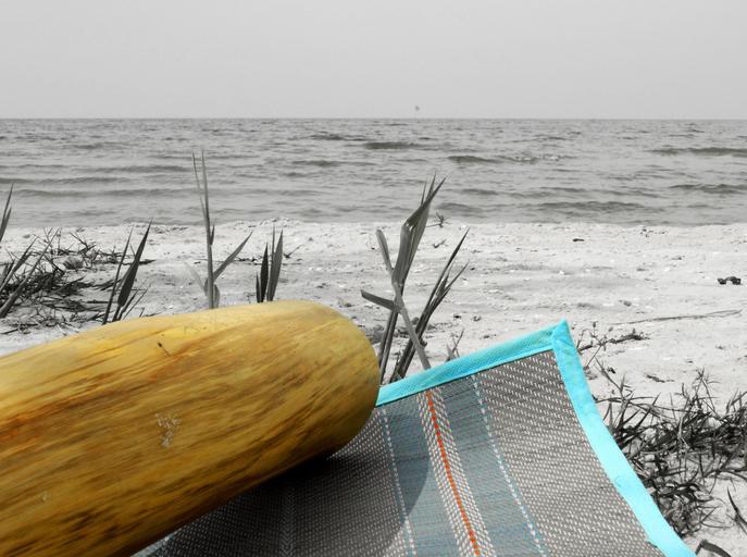 Keywords: didgeridoo yedaki instrument wood australia aboriginal summer holiday recover relax sea beach beach mat mat didgeridu wind instrument overtone empire exotic farbenspiel desaturation grey brown red blue color
