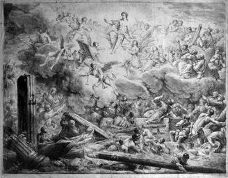 Keywords: Die Auferstehung der Toten und das jüngste Gericht.JPG das jüngste Gericht Radierung von Bernhard Rode 1767 begonnen kurz vor oder im Jahre 1779 vollendet eigene Fotografie own photography artwork Creator Bernhard Rode file James Steakley etching 1767-1779; photo 2009 01 17 PD-old-100 1770s etchings by Bernhard Rode Reliefs of the Last Judgment |