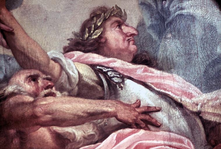 Keywords: Die Erhebung des Großen Kurfürsten in den Olymp (van Loo) - Kurfürst.jpg The Elevation of the Great Elector into Olympus Oil on canvas destroyed in World War II Ceiling painting detail the Great Elector and Chronos City Palace Potsdam Die Erhebung des Großen Kurfürsten in den Olymp Öl auf Leinwand Kriegsverlust Deckengemälde Ausschnitt Großer Kurfürst und Chronos Stadtschloss Potsdam 20366819 LAC 9 003/33 fmlac9003_33 <br /> Foto Peter Cürlis; color ; Aufnahme-Datum um 1944 04/1944 08; Zugang Dauerleihgabe Kunsthistorisches Institut der Universität Mainz Fotoinhalt Ausschnitt der Kurfürst mit Chronos Teilansicht artwork Creator Charles-Amédée-Philippe van Loo file James Steakley 1751 Die Erhebung des Großen Kurfürsten in den Olymp van Loo thumb left PD-old-100-1923 The Elevation of the Great Elector into Olympus van Loo Portrait paintings with laurel wreaths |
