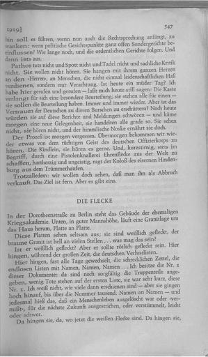 Keywords: Die Flecke 1.jpg Die_Flecke_ jpg 2 Die_Flecke In Gesammelte Werke Band I 1907-1924 herausgegeben von Mary Gerold-Tucholsky und Fritz J Raddatz Rowohlt Verlag GmbH Reinbek bei Hamburg 1960 S 547-548 Scan from original book 1960 1919 Creator Kurt Tucholsky PD-old De Wikisource book leaflet Kurt Tucholsky |