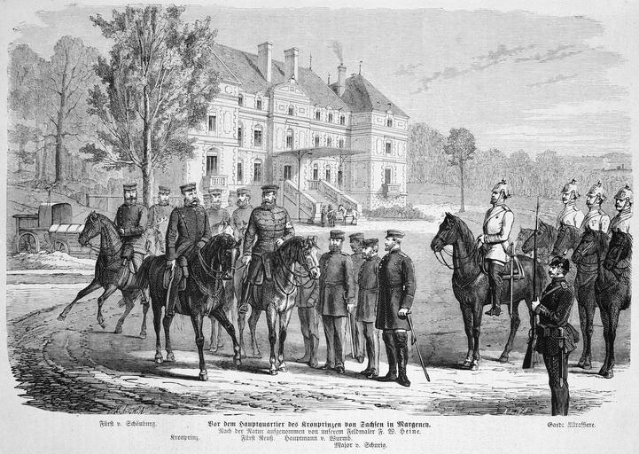Keywords: Die Gartenlaube (1871) b 033.jpg 033 034 Die Gartenlaube Franco-Prussian War Albert of Saxony ImageNote 1 1103 2255 1250 95 3460 2458 2 Vor dem Hauptquartier des Kronprinzen von Sachsen in Margency Nach der Natur aufgenommen von unserem Feldmaler F W Heine ImageNoteEnd 1 ImageNote 2 506 2255 363 78 3460 2458 2 Fürst v Schönburg ImageNoteEnd 2 ImageNote 3 891 2324 199 78 3460 2458 2 Kronprinz ImageNoteEnd 3 ImageNote 4 1285 2354 221 48 3460 2458 2 Fürst Reuß ImageNoteEnd 4 ImageNote 5 1522 2350 398 48 3460 2458 2 Hauptmann v Wurmb ImageNoteEnd 5 ImageNote 6 1786 2397 324 35 3460 2458 2 Major v Schurig ImageNoteEnd 6 ImageNote 7 2937 2263 311 74 3460 2458 2 Garde Kürassiere ImageNoteEnd 7 Friedrich Wilhelm Heine Margency |