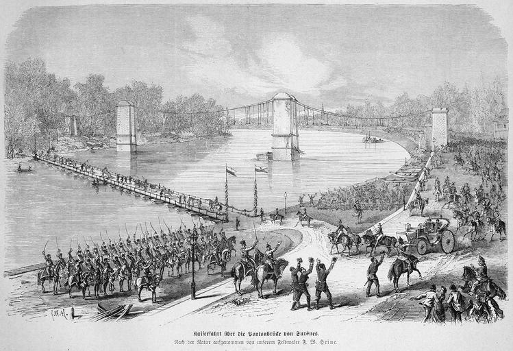 Keywords: Die Gartenlaube (1871) b 337.jpg 337 338 Die Gartenlaube Franco-Prussian War Pontoon bridges in France Friedrich Wilhelm Heine ImageNote 1 1146 2180 1133 137 3421 2338 2 Kaiserfahrt über die Pontonbrücke von Surènes Nach der Natur aufgenommen von unserem Feldmaler F W Heine ImageNoteEnd 1 |