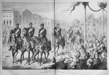 Keywords: Die Gartenlaube (1871) b 672.jpg 672 673 ImageNote 1 1446 2559 953 135 3990 2749 2 Die drei Paladine des deutschen Kaisers Ein Erinnerungsblatt von Prof W Camphausen in Düsseldorf ImageNoteEnd 1 Wilhelm I of Germany Otto von Bismarck in 1871 Helmuth von Moltke the Elder Albrecht von Roon |