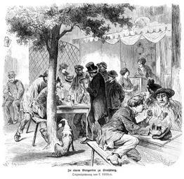 Keywords: Die Gartenlaube (1872) b 777.jpg 777 778 Ludwig Löffler 1819 “1876 de Bild von Seite 777 der Zeitschrift Die Gartenlaube Image from page 769 of journal Die Gartenlaube 1872 <br />In einem Biergarten zu Straßburg Originalzeichnung von L Löffler Image from page 777 of book Die Gartenlaube 1872 Ludwig Löffler Beer gardens in Germany Strasbourg in the 1870s |