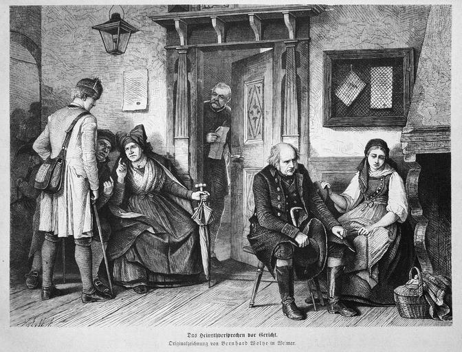 Keywords: Die Gartenlaube (1872) b 353.jpg Das Heirathversprechen vor Gericht Originalzeichnung von <s>Bernhard</s> Berthold Woltze in Weimar <br />Bild von Seite 353 der Zeitschrift Die Gartenlaube 1872 Image from page 353 of book Die Gartenlaube 1872 PD-old-100-1923 Berthold Woltze Sitting people in art Waiting in art Courtrooms in art Courtrooms in Germany |