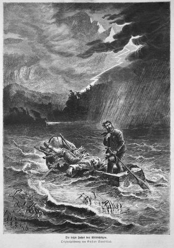 Keywords: Die Gartenlaube (1872) b 535.jpg 535 536 Gustav Sundblad 1835 “1891 de Die letzte Fahrt des Wildschützen Originalzeichnung von Gustav Sundblad <br />Bild aus Seite 535 in Die Gartenlaube 1872 Image from page 535 of book Die Gartenlaube 1872 People with boats in art Gustav Sundblad |